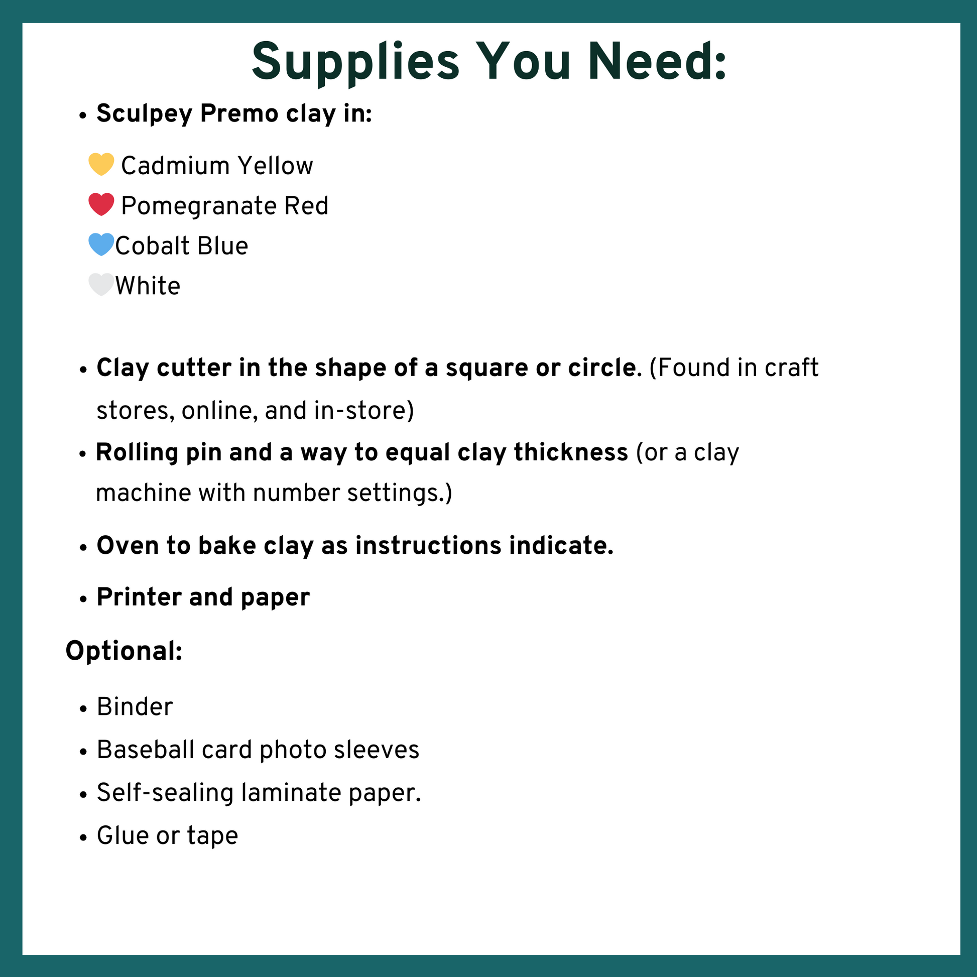 - Clay cutter in the shape of a square or circle. (Found in craft stores, online, and in-store)